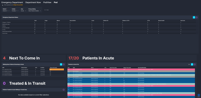 Monitor real-time activity, demand, and patient flow within Emergency Department treatment pods, including triage.
