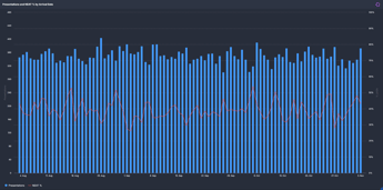 When you first open the component, you will see a chart of daily ED presentations and the ED Length of Stay (ELOS) % or NEAT % for the past three months, depending on your local environment. Both measures reflect the 4-hour performance target for emergency departments.
