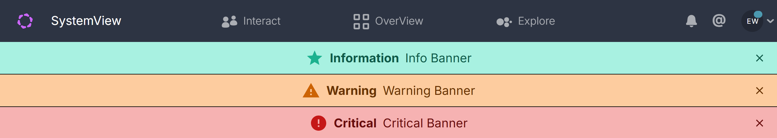 SystemView provides three banner types: