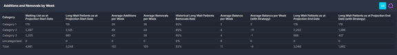 Select + Category to enter the expected average waiting list removals per week for the relevant categories.
