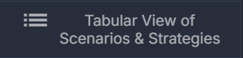 Select Tabular View of Scenarios & Strategies above the scenarios section to open a detailed table showing all scenarios and strategies broken down by: