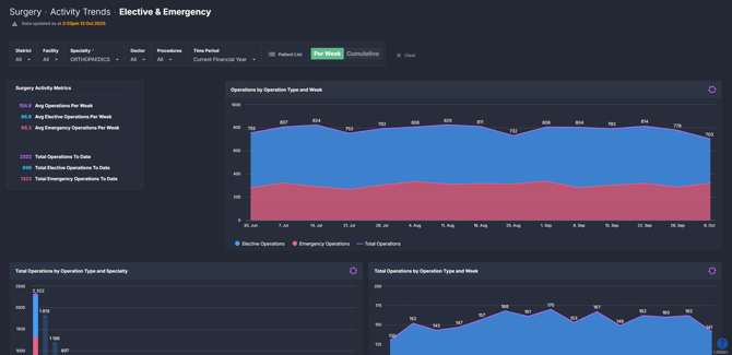 - Stay on top of surgical performance: Track how elective and emergency activity changes over time.