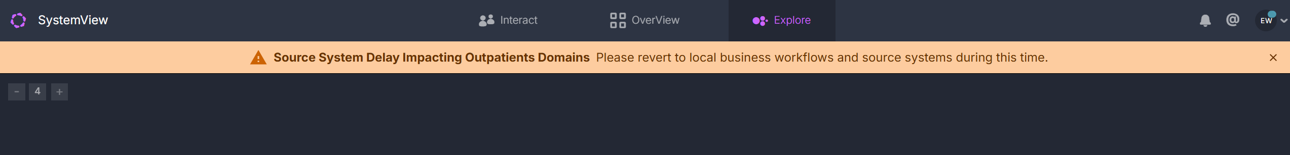 If there is ever an issue impacting data refreshes or the use of SystemView, a notification banner will appear at the top of the screen.